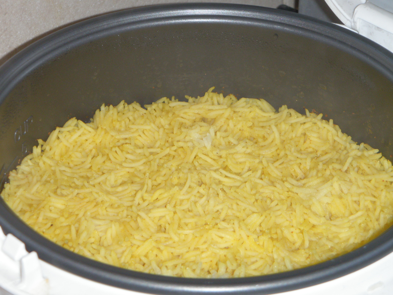 Since we didn't have a Paellera big enough to do the cooking, we cheated (hehe) and cooked the rice separately in the rice cooker along with the Paella seasoning mix. Normally, you would need a proper Paellera to cook the rice in. Authentic Valencian Paella calls for short-grain white rice but we prefer basmati rice as they hold up better with all the mixing and tossing.